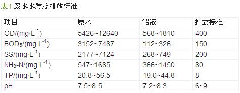 豬場廢水具有有機(jī)物、懸浮物濃度高,富含氮磷且沖擊負(fù)荷大等特點,一般先采用厭氧進(jìn)行處理,降解廢水中大部分有機(jī)物,但其出水(沼液)中的有機(jī)物、氮磷濃度仍然很高,需進(jìn)一步處理,且碳氮比較低,處理難度大〔1, 2, 3, 4, 5〕。有必要探索一套技術(shù)及經(jīng)濟(jì)均可行的新型豬場沼液處理工藝并進(jìn)行工程示范,為豬場沼液治理奠定基礎(chǔ)。1 工程概況江西省某規(guī)?;B(yǎng)豬場的廢水排放量為150 m3/d,之前已建有厭氧設(shè)施:升流式固體厭氧反應(yīng)器(USR)及沼氣池,為進(jìn)一步保護(hù)周邊環(huán)境,啟動廢水深度處理工程,使出水滿足《畜禽養(yǎng)殖業(yè)污染物排放標(biāo)準(zhǔn)》(GB 18596—2001)。1.1 廢水的水質(zhì)水量該養(yǎng)豬場主要來源于沖欄水、豬糞尿等,具體水質(zhì)水量及相應(yīng)排放標(biāo)準(zhǔn)見表 1。